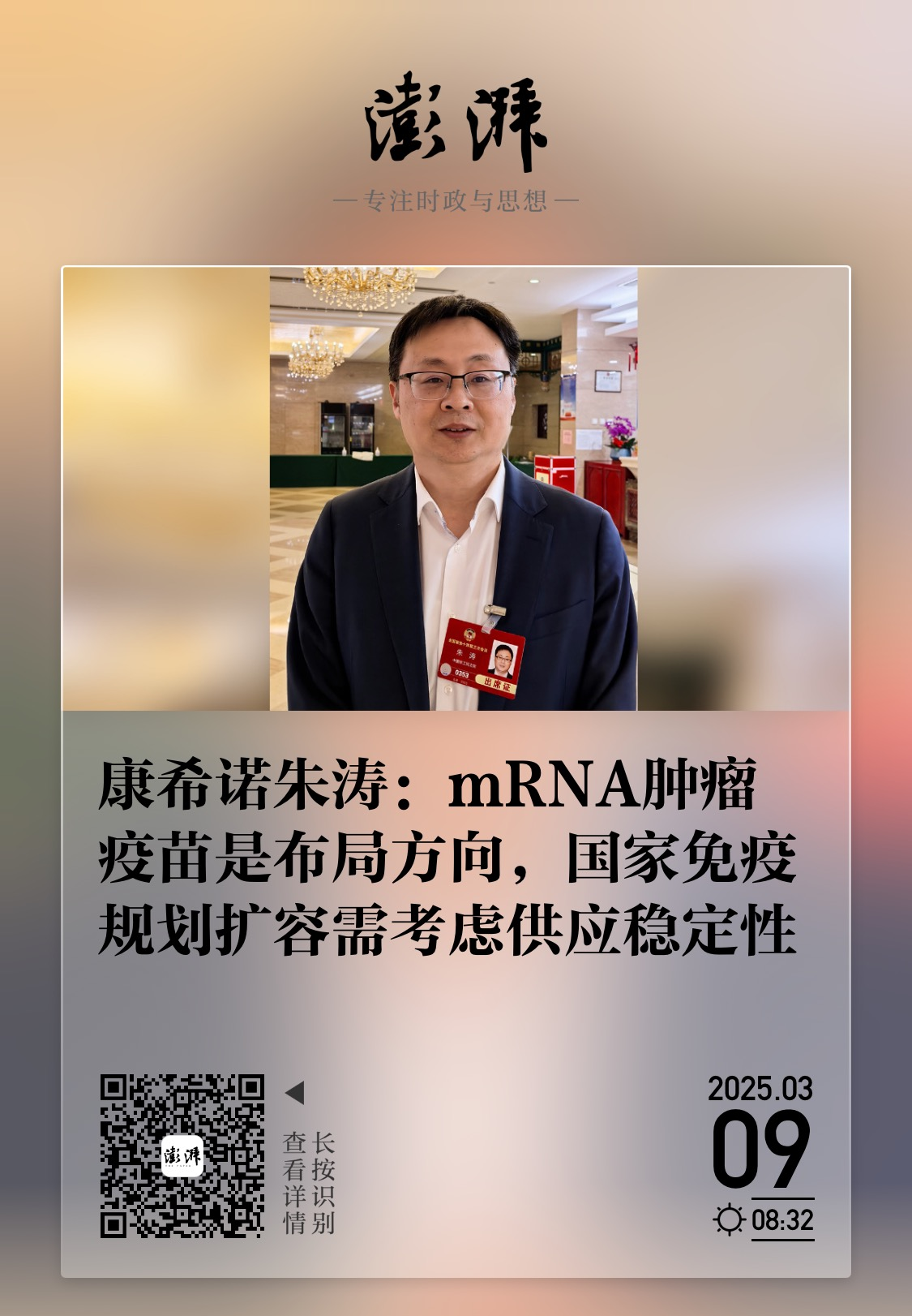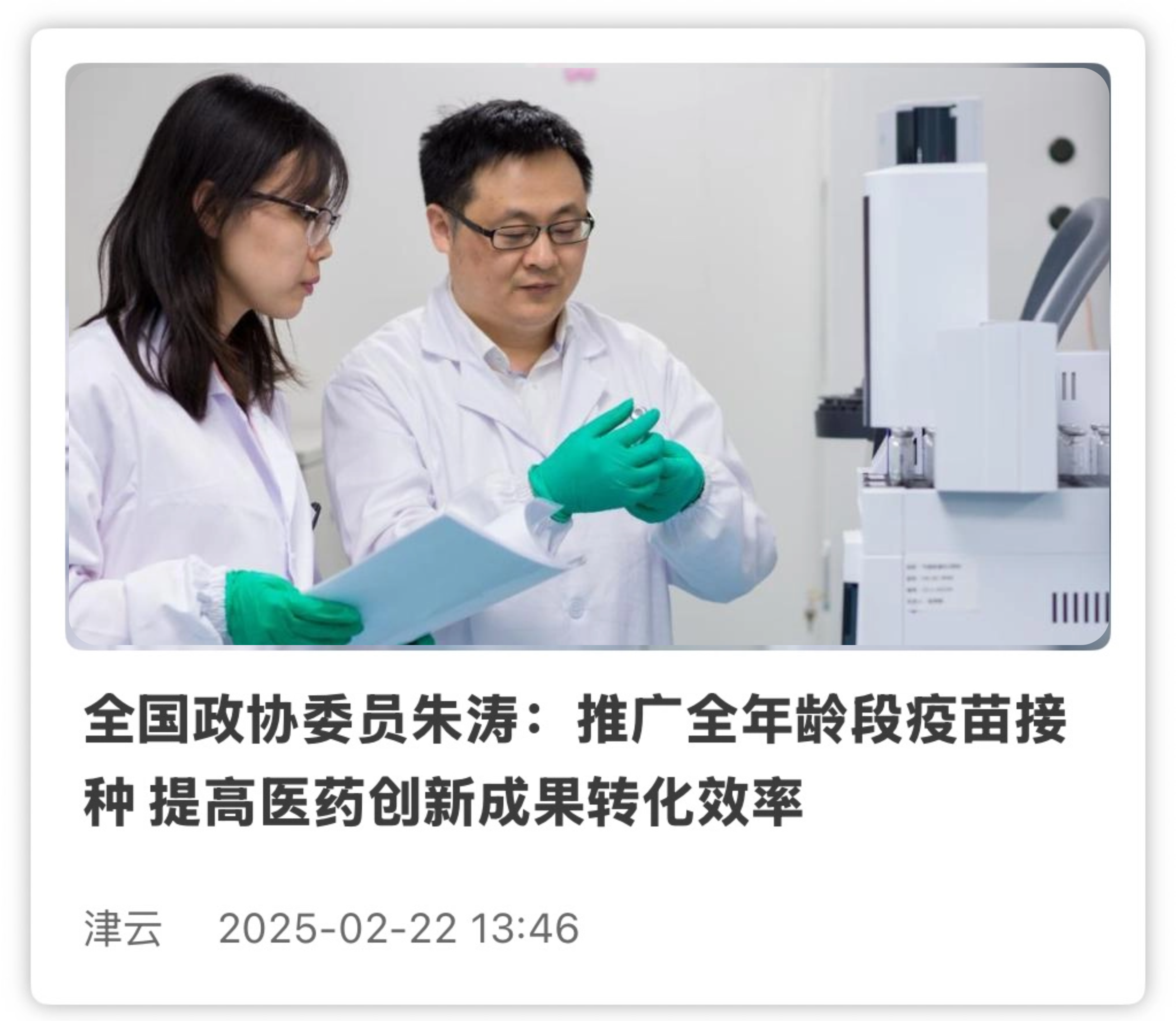 全国政协委员朱涛:加快开展新质生产力 提高中国疫苗的国际认可度及竞争力