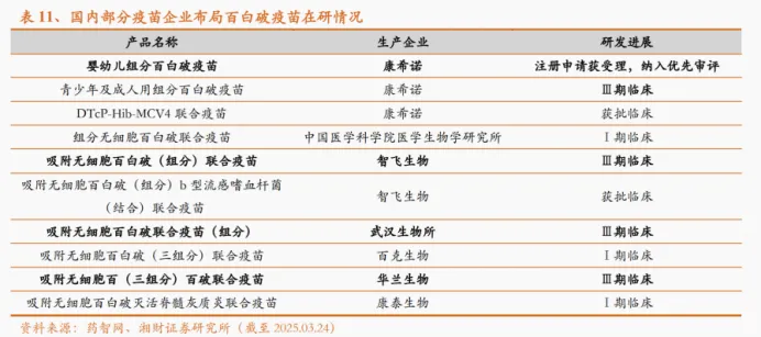 其中婴幼儿组分百白破疫苗瞄准了国内空白市场,主打进口替代。不同于传统共纯化工艺,其采用组分纯化技术,能精确定量抗原比例,安全性与批间一致性更优,现在已纳入优先审评,上市后将填补国内企业无组分百白破疫苗的缺口。加上青少年及成人用组分百白破疫苗,两款产品有望形成全年龄段的预防防线。据湘财证券测算,仅国内婴幼儿市场,这款产品就有望形成年销超10亿元的规模。